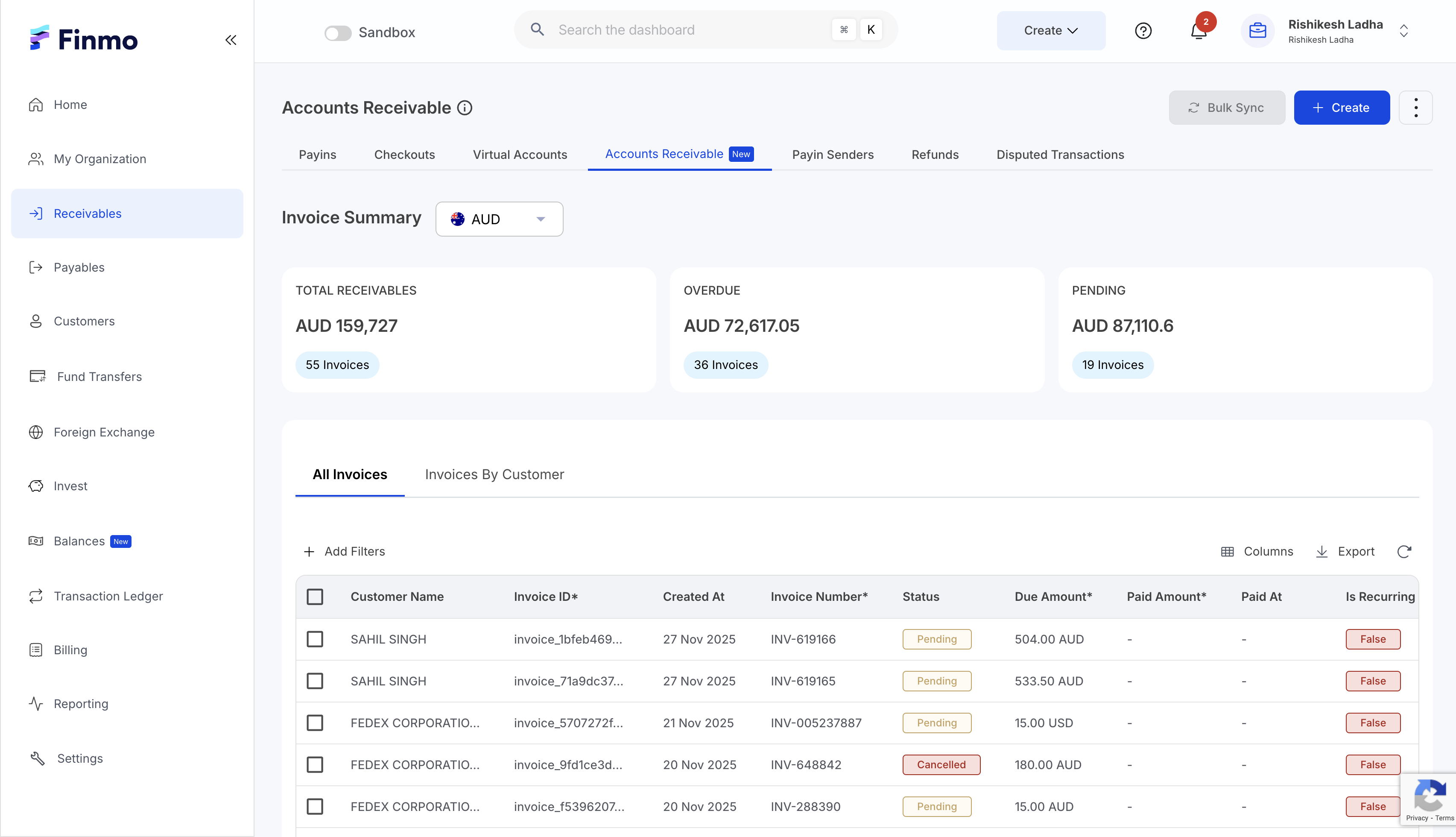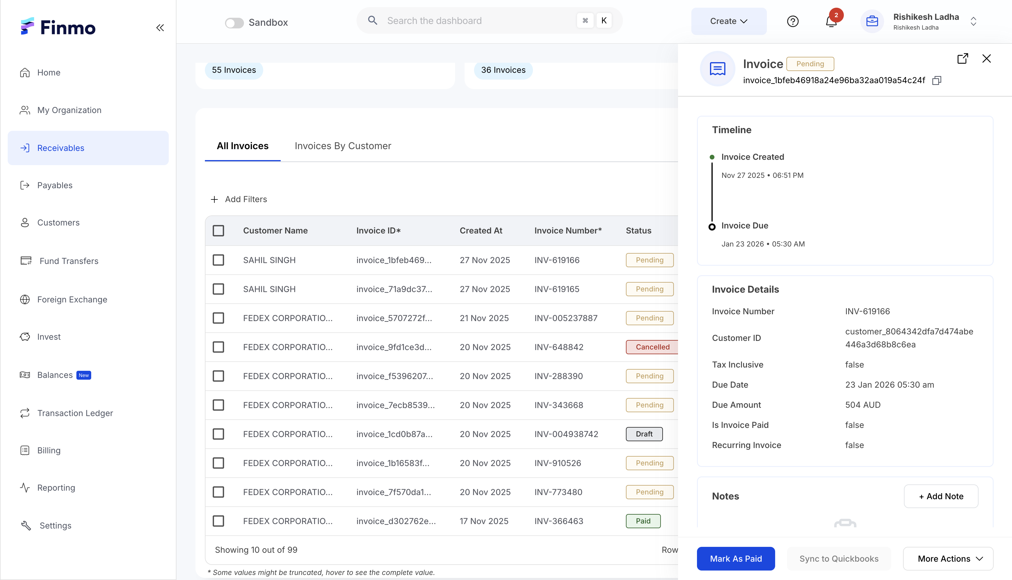 - Bulk Sync AR & AP from Finmo to Quickbooks.