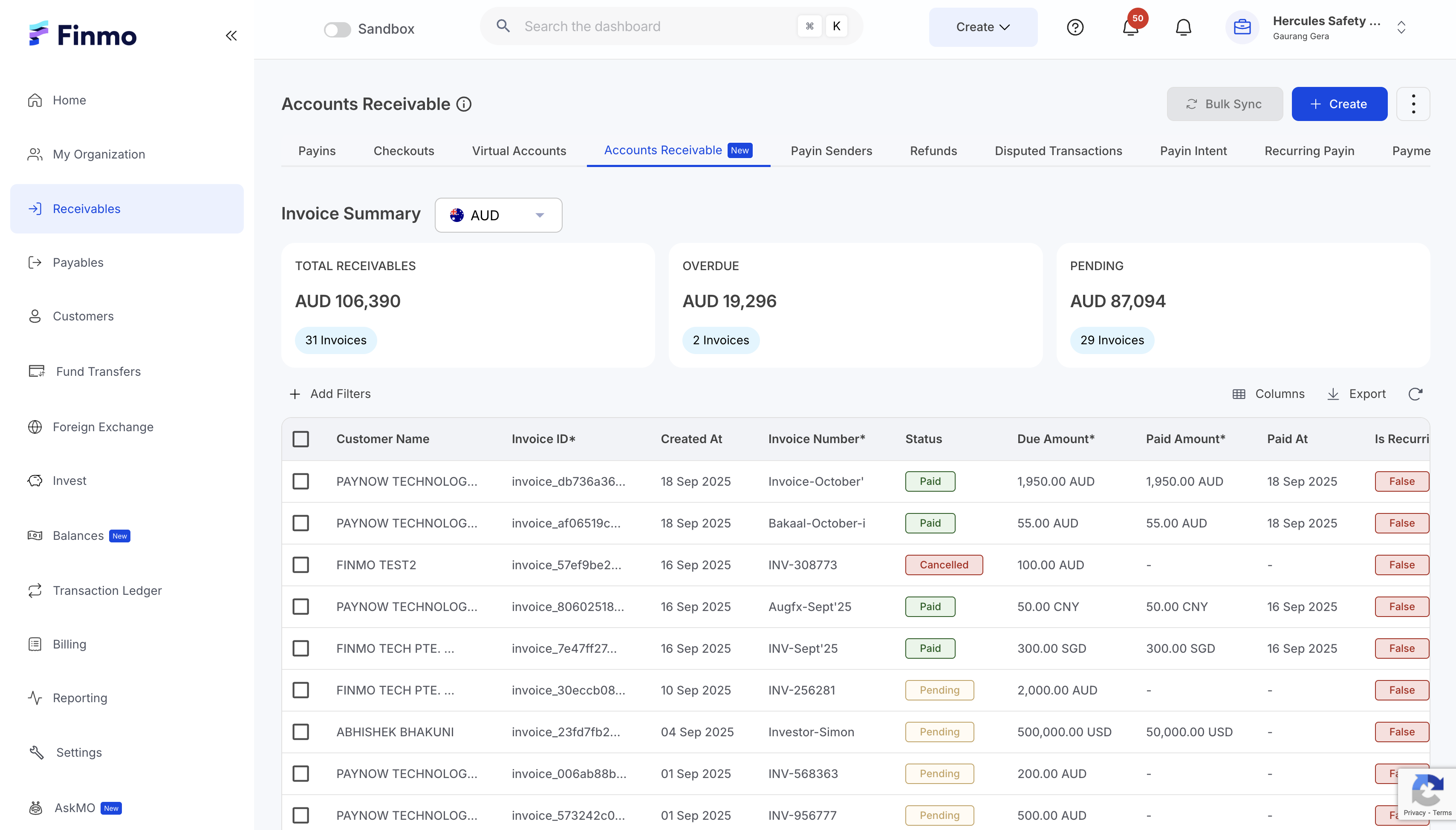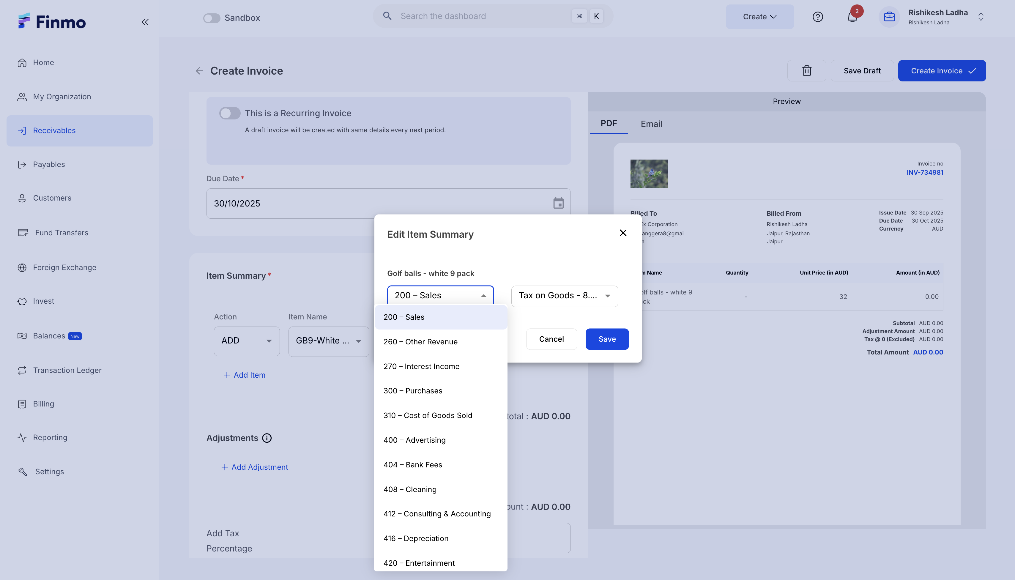 - After completing the configuration setup, you can proceed to create AR or AP entries from the Finmo Client Portal.