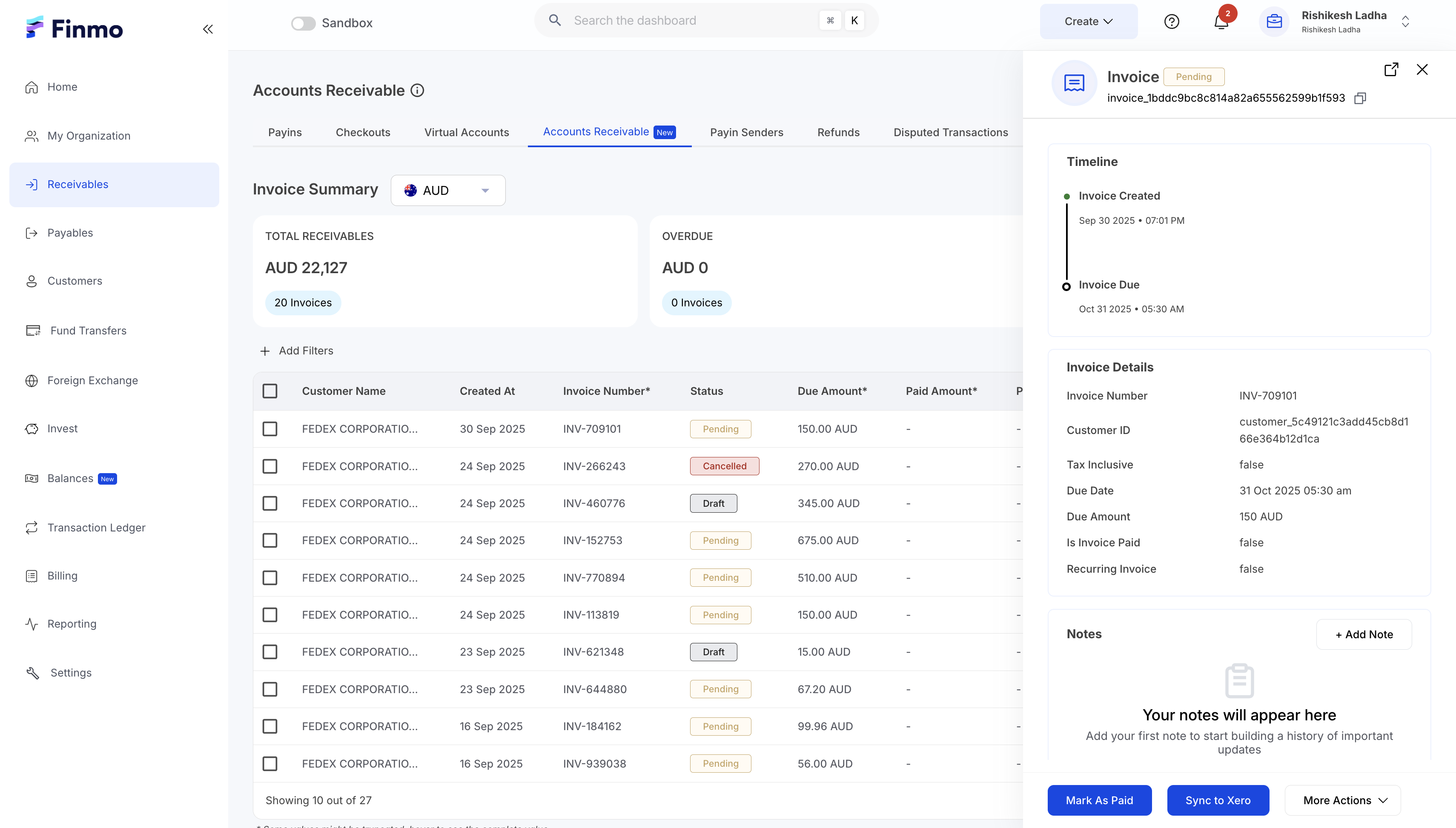 - Bulk Sync AR & AP from Finmo to Xero.