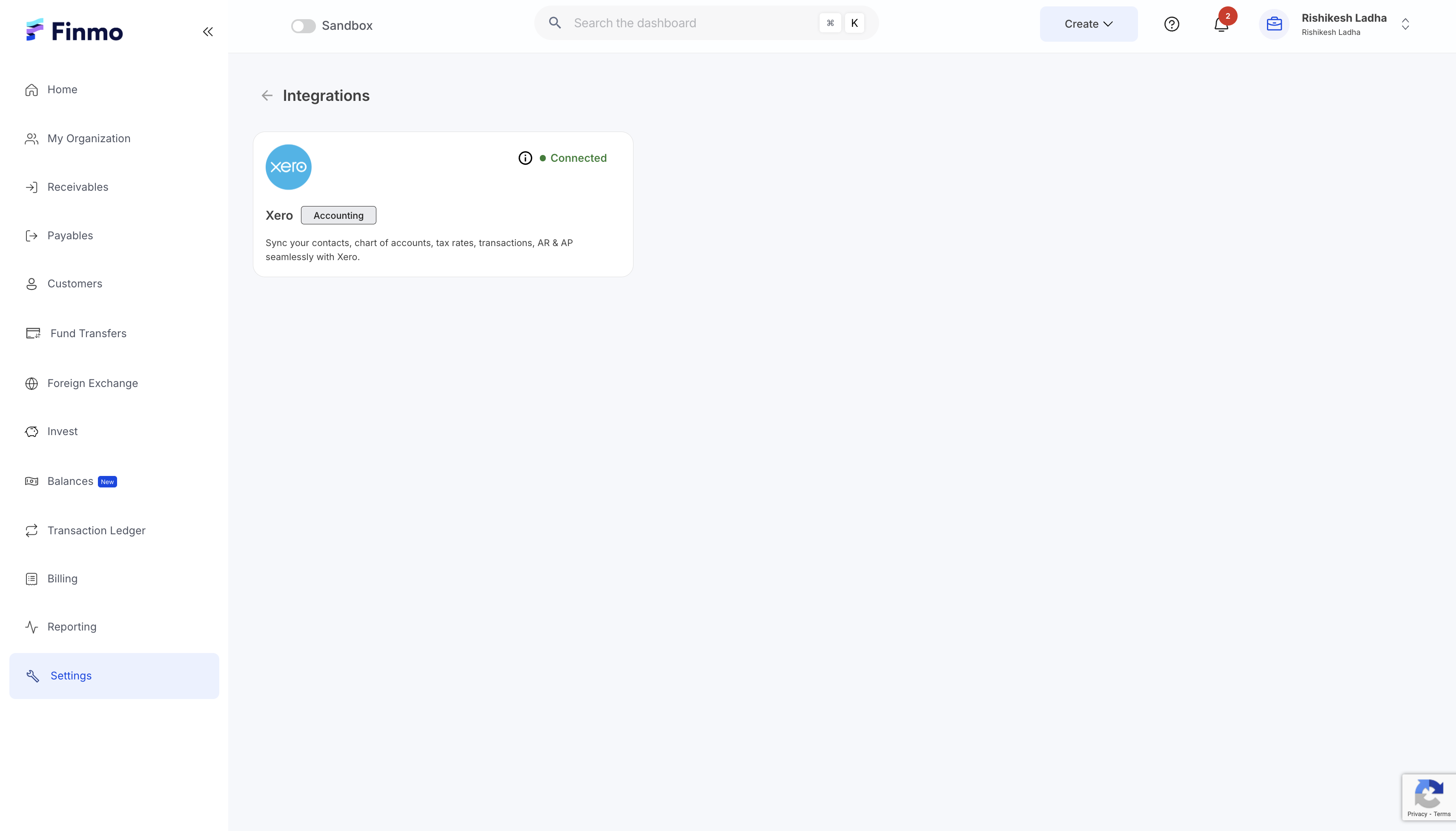 Enabling the Xero integration for your organization allows seamless synchronization between Finmo and Xero.