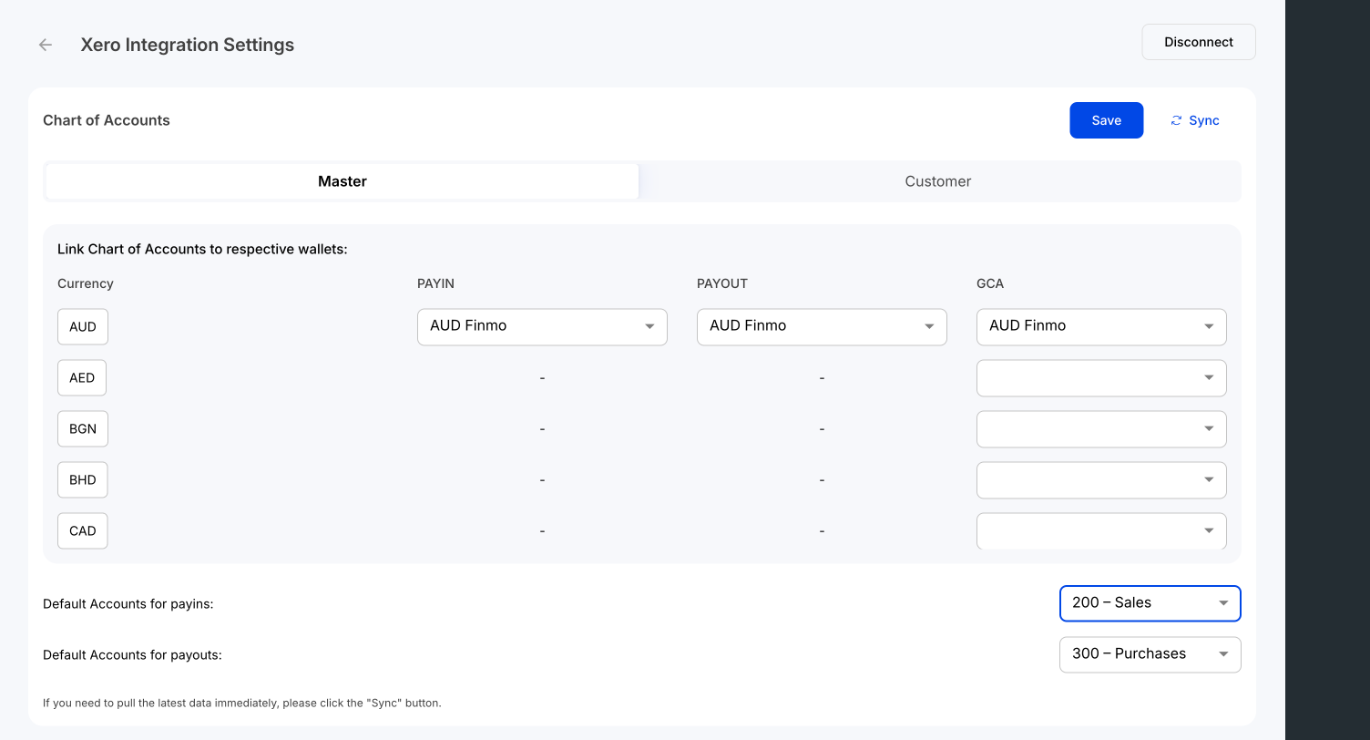Be sure to save your configuration after setup. You can also sync the latest Chart of Accounts and Tax Rates from Xero to Finmo at any time.